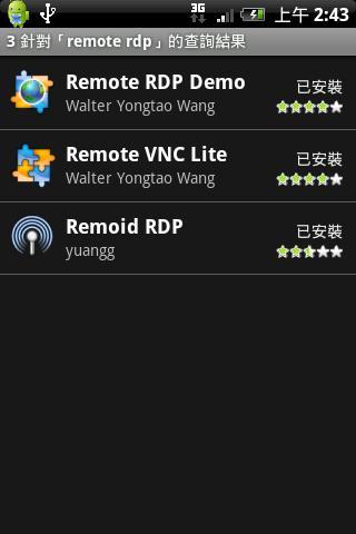 然後到Android Market中搜尋Remote RDP