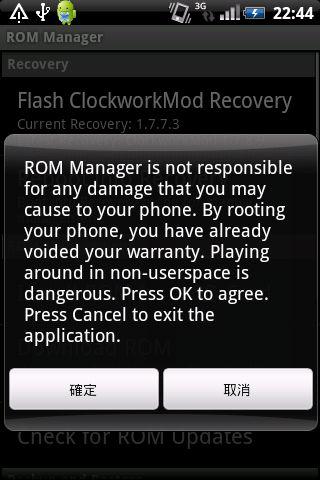 Rom Manager需要你的手機已經Root過才能使用