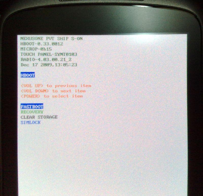 3.按住軌跡球與電源鍵開機,會進入fastboot模式