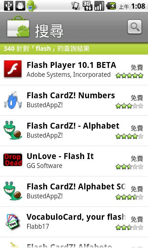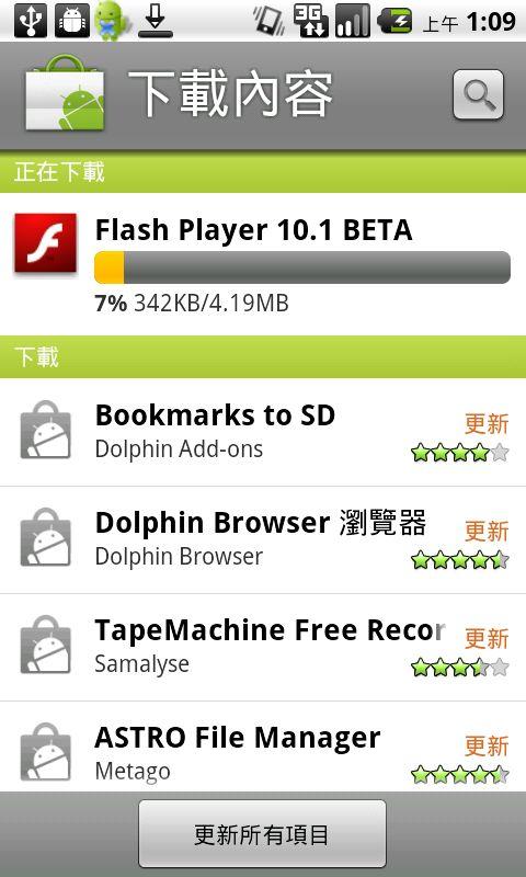升級完成後再Android Market就可以安裝Flash Beta了!