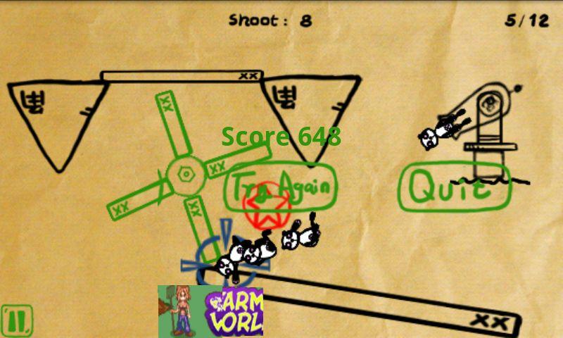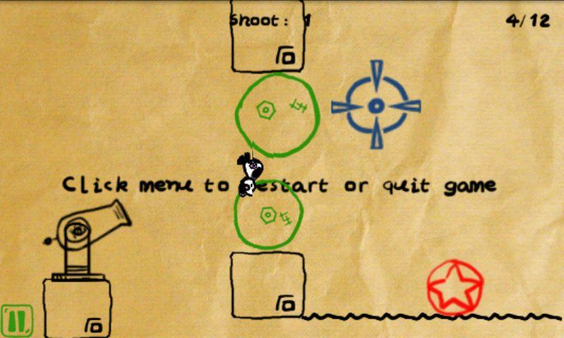 遊戲的方式是處碰螢幕,砲塔與手指的距離會決定出力和角度,藍色的是上次觸碰的位置,綠色是可以被移動的物件,黑色則是不能移動的障礙物