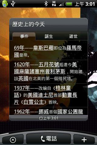 該Widget會顯示今天發生的歷史事件,非常的有學習與教育價值